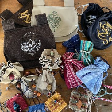 Handspun yarn, needle felting, dyeing, handwoven cotton dishtowels, knitted hats, mitts, scarves, shawls, woven shawls and a variety of other creations.
